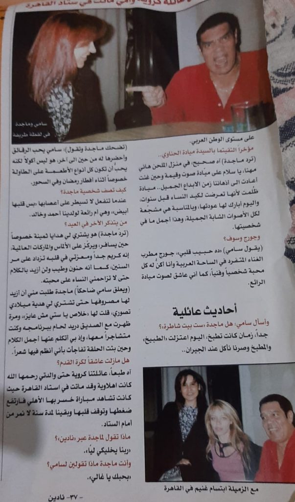 -آه طبعاً ، عائلتنا كروية حتى والدتي رحمها الله كانت أهلاوية وقد ماتت في إستاد القاهرة حيث كانت تشاهد مباراة خسر بها الاهلي فأرتفع ضغطها وتوقف قلبها، وبقينا لمدة سنة لا نمر امام الاستاد.