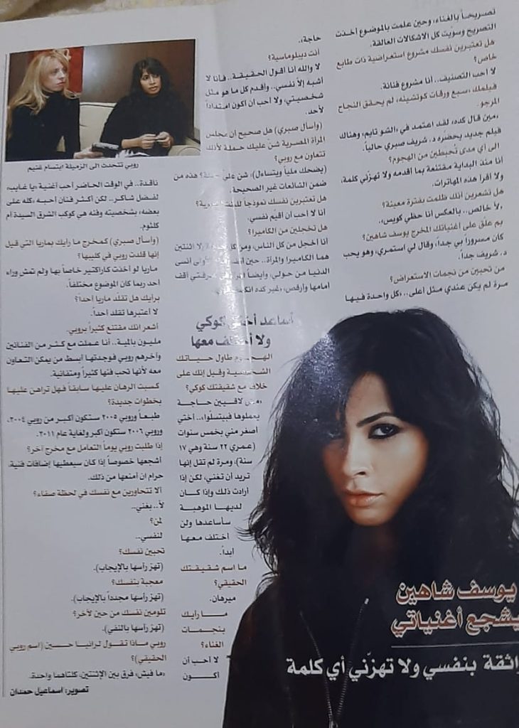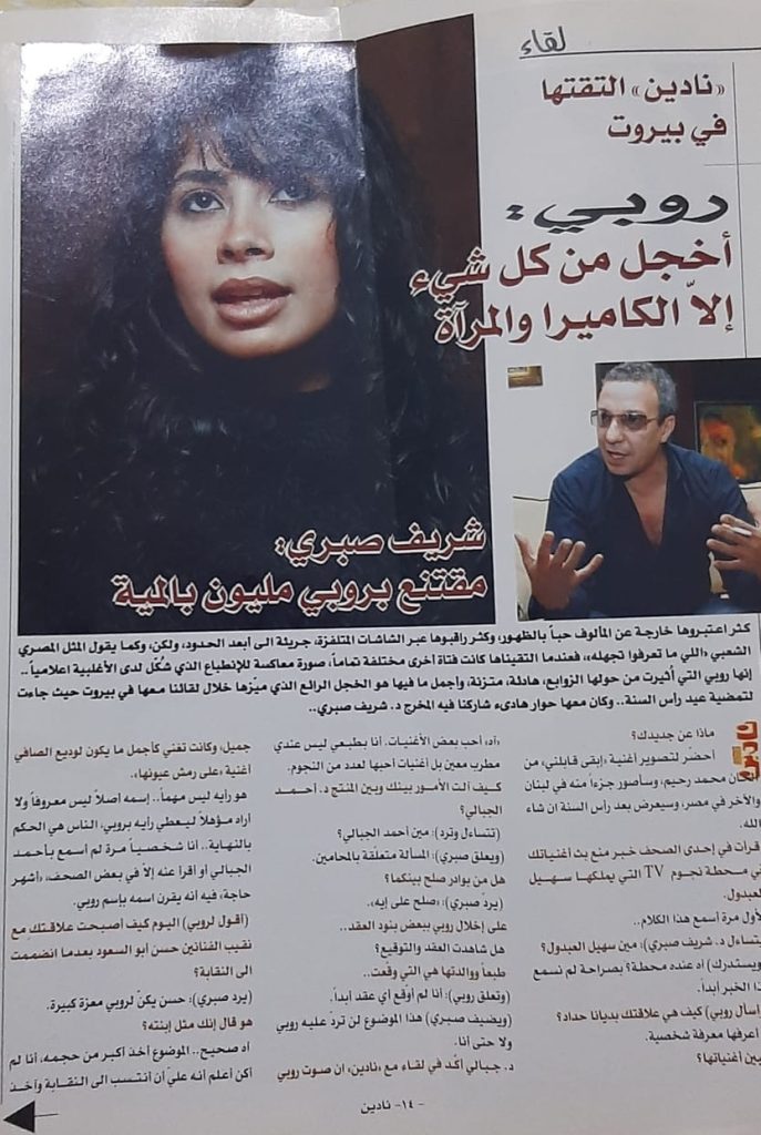 كثر اعتبروها خارجة عن المألوف حباً بالظهور،وكثر راقبوها عبر الشاشات المتلفزة ، جريئة الى أبعد الحدود ، ولكن كما يقول المثل المصري الشعبي ” اللي ما تعرفه تجهله” ، فعندما التقيتها كانت فتاة أخرى مختلفة تماماً ، صورة معاكسة للأنطباع الذي شُكل لدى الاغلابية الاعلامية.. انها #روبي التي أُثيرت من حولها الزوابع، هادئة، متزنة، وأجمل ما فيها هو الخجل الرائع الذي ميزها خلال لقائنا ببيروت حيث جاءت لتمضية عيد رأس السنة.. وكان معها في هذا الحوار الذي شاركنا فيه# المخرج_ د_ شريف_ صبري_ حيث تم تسجيله في الشهر الاخير من عام 2004 ونشرته حينها بمجلة نادين واليوم أُعيد نشره في خانة الارشيف في elmaw2a3.net