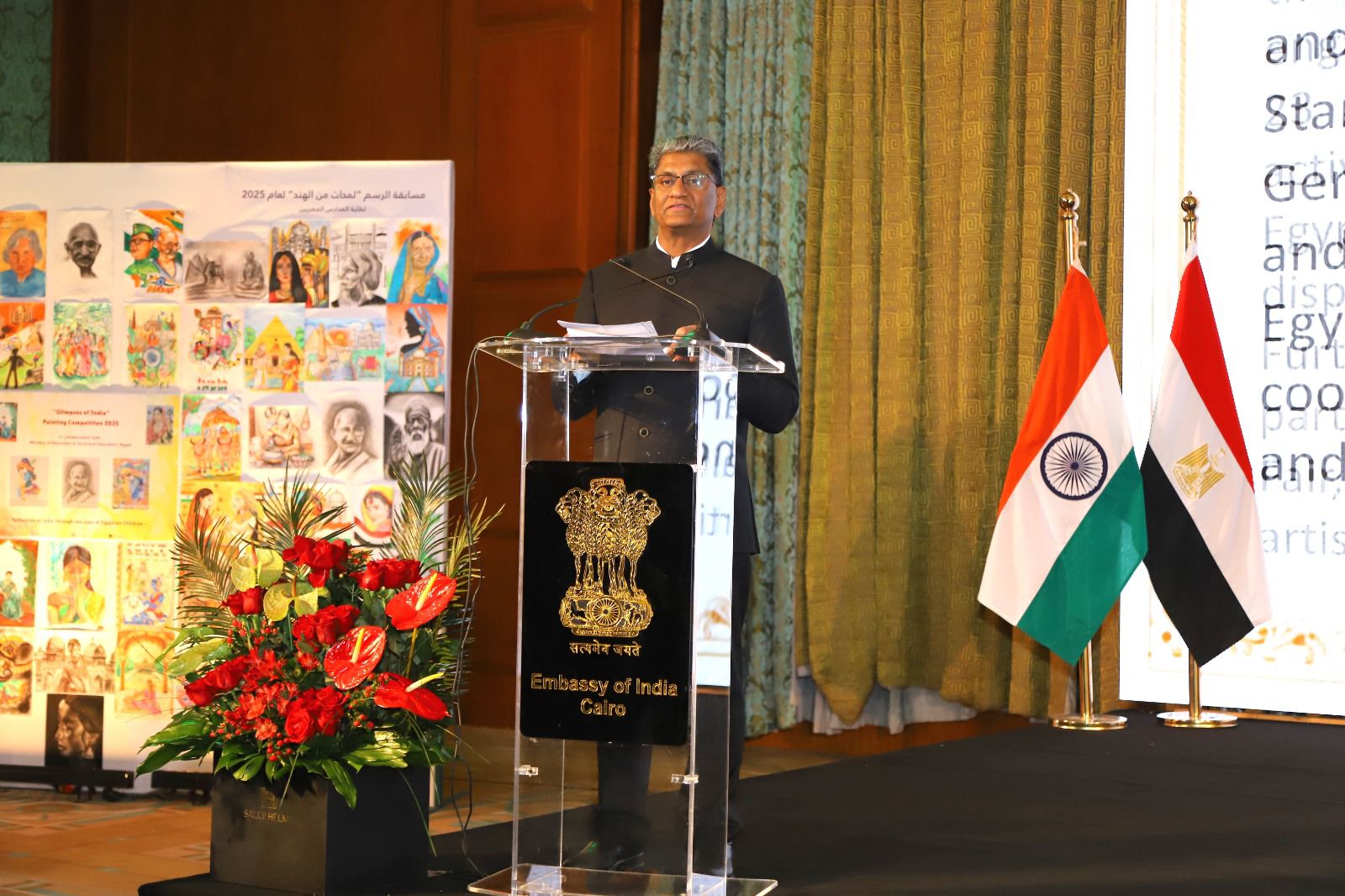 وتفكر الهند دائما لتحقيق الانجازات على نطاق واسع، وكذلك تفعل السفارة الهندية بالقاهرة. وفي هذا الصدد، نظمت السفارة الهندية بالقاهرة -بالشراكة مع مصر- مسابقة الرسم السنوية “لمحات من الهند” بمشاركة أكثر من 29 ألف طالب وطالبة من 23 محافظة في مصر، وربما تعد هذه المسابقة هي أكبر نشاط تفاعلي مع الجمهور المصري تنفذه أي سفارة في مصر على الإطلاق. ونجد بعض هذه الأعمال الفنية الجميلة معروضة هنا، وأدعوكم جميعًا لمشاهدتها.