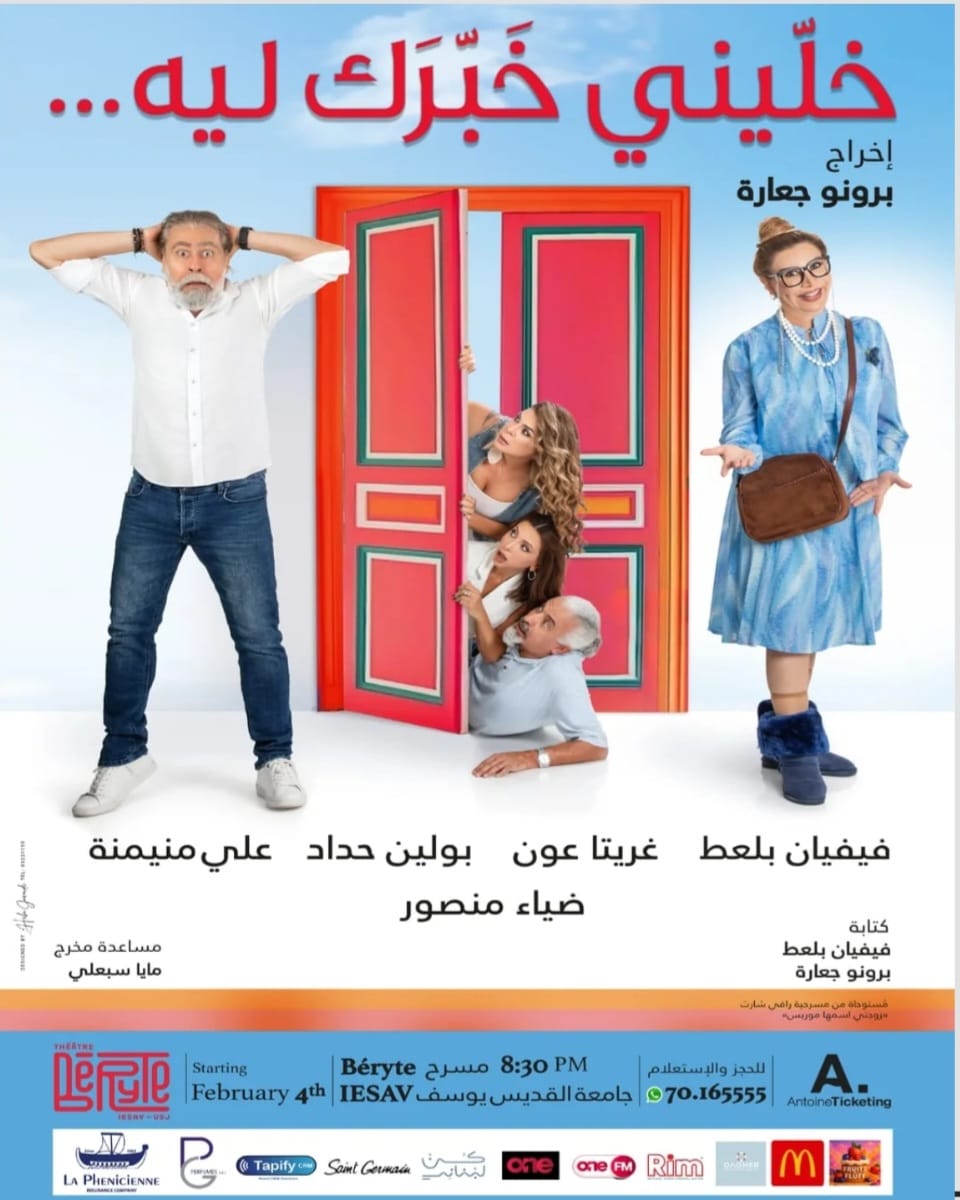 تختلف هذه المسرحية وتتميز من حيث النوع؛ فهي مسرحية كوميدية إجتماعية، قام ببطولتها كل من غريتا عون، علي منيمنة، بولين حداد، فيفيان بلعط، وضياء منصور، تحت إدارة المخرج برونو جعارة الذي تشارك مع فيفيان بلعط في كتابة المسرحية.