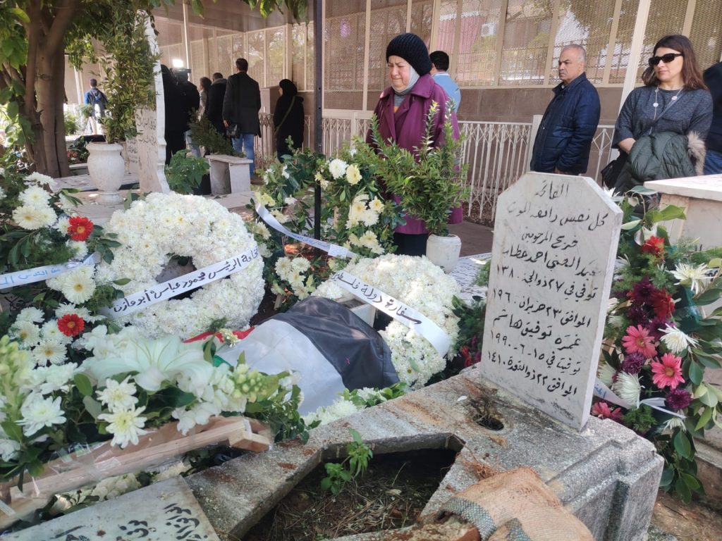 وبعد مراسم الدفن وخلال تقديم العزاء كان اتصالاً من القدس من سيادة المطران عطالله حنا عبر الدكتورين #هاني _غضبان_ وثائر_ الغضبان_ حيث قدما واجب العزاء لاهل الفقيد صاحب الرسالة الفنية السامية..