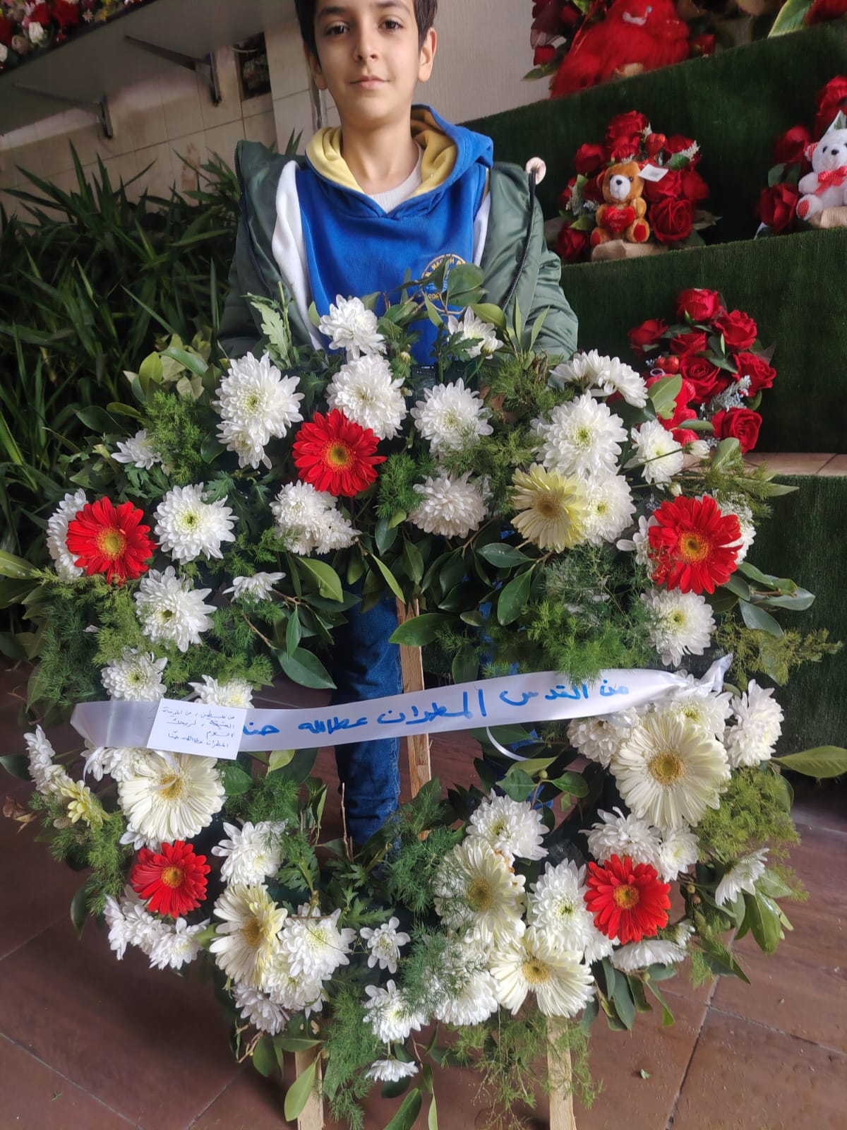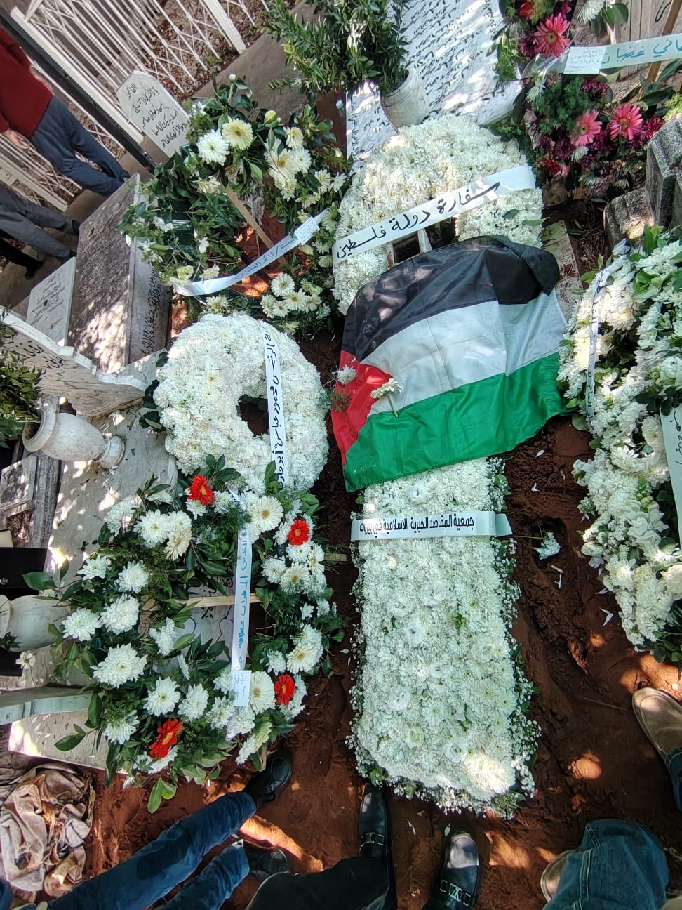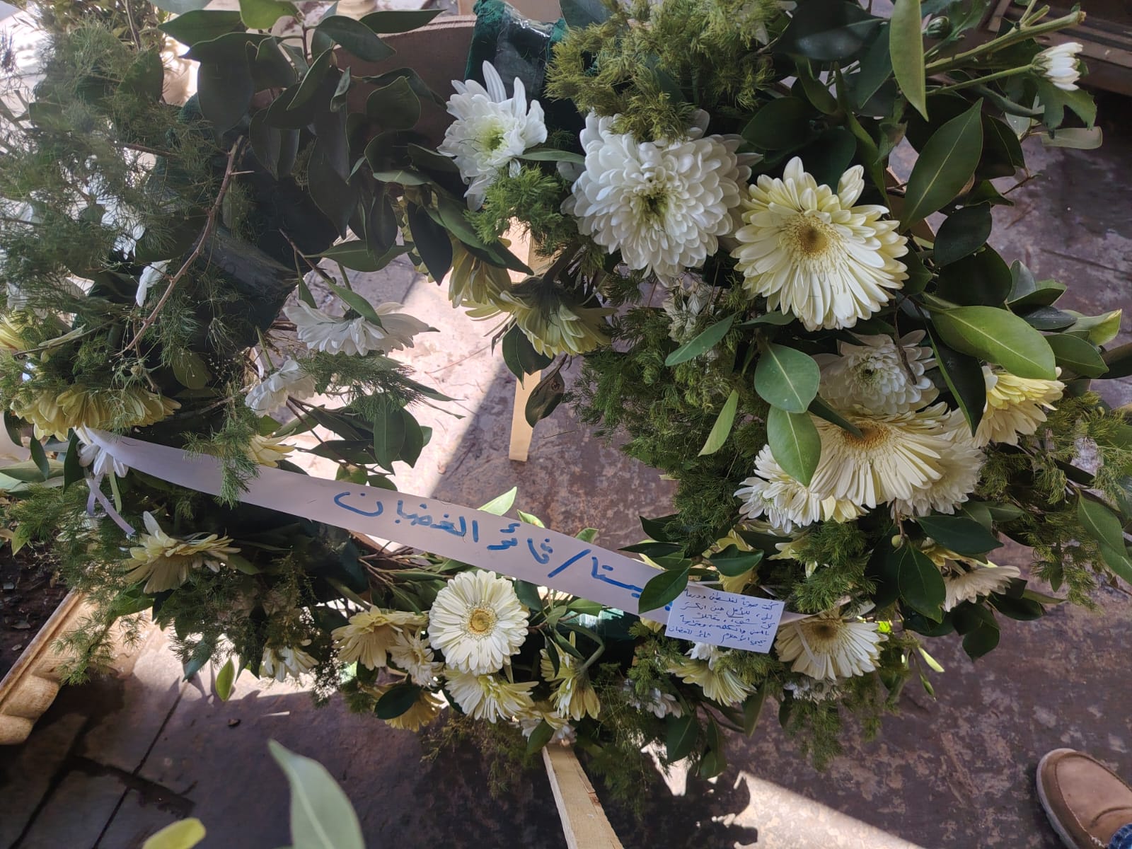 وبعد مراسم الدفن وخلال تقديم العزاء كان اتصالاً من القدس من سيادة المطران عطالله حنا عبر الدكتورين #هاني _غضبان_ وثائر_ الغضبان_ حيث قدما واجب العزاء لاهل الفقيد صاحب الرسالة الفنية السامية..