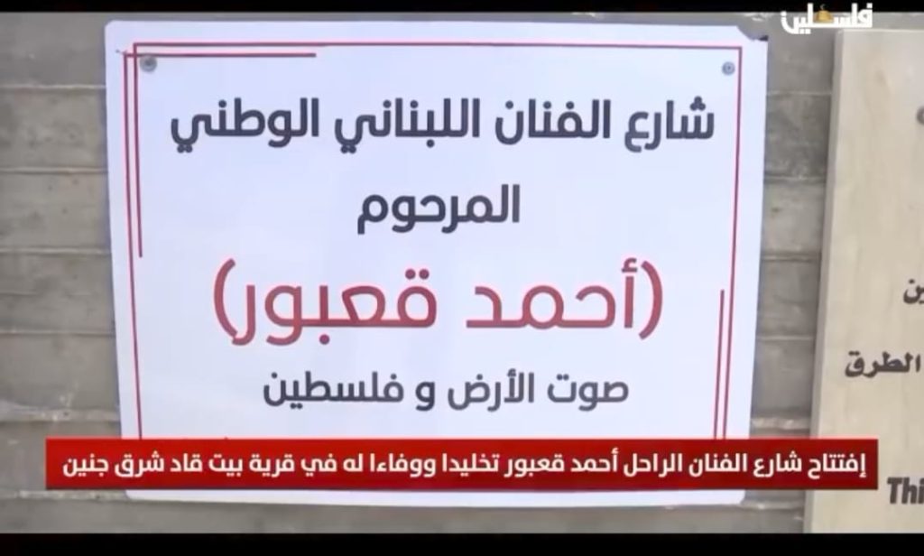 واطلاق اسم احمد قعبور على الشارع في جنين يعكس استمرار مسيرة العطاء وتأكيداً على ان الفن الملتزم سيبقى حاضراً بوجدان الاجيالوداعماً لمسيرة العودة والتحرير واقامة الدولة الفلسطينية..